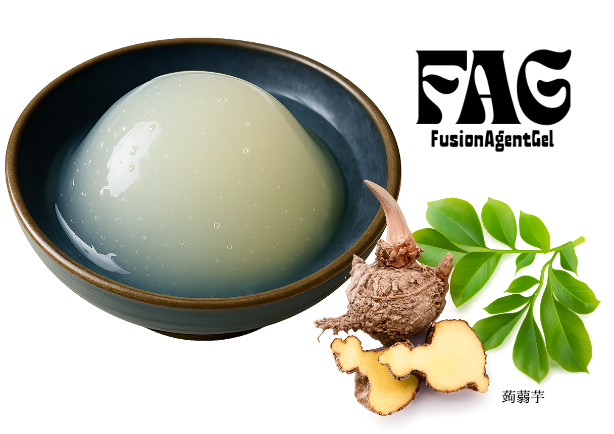 半固形流動状のFAGは、肉・魚・穀物・調味料などと融合することで、栄養・食感・機能性を高める多機能こんにゃくとして進化しました。